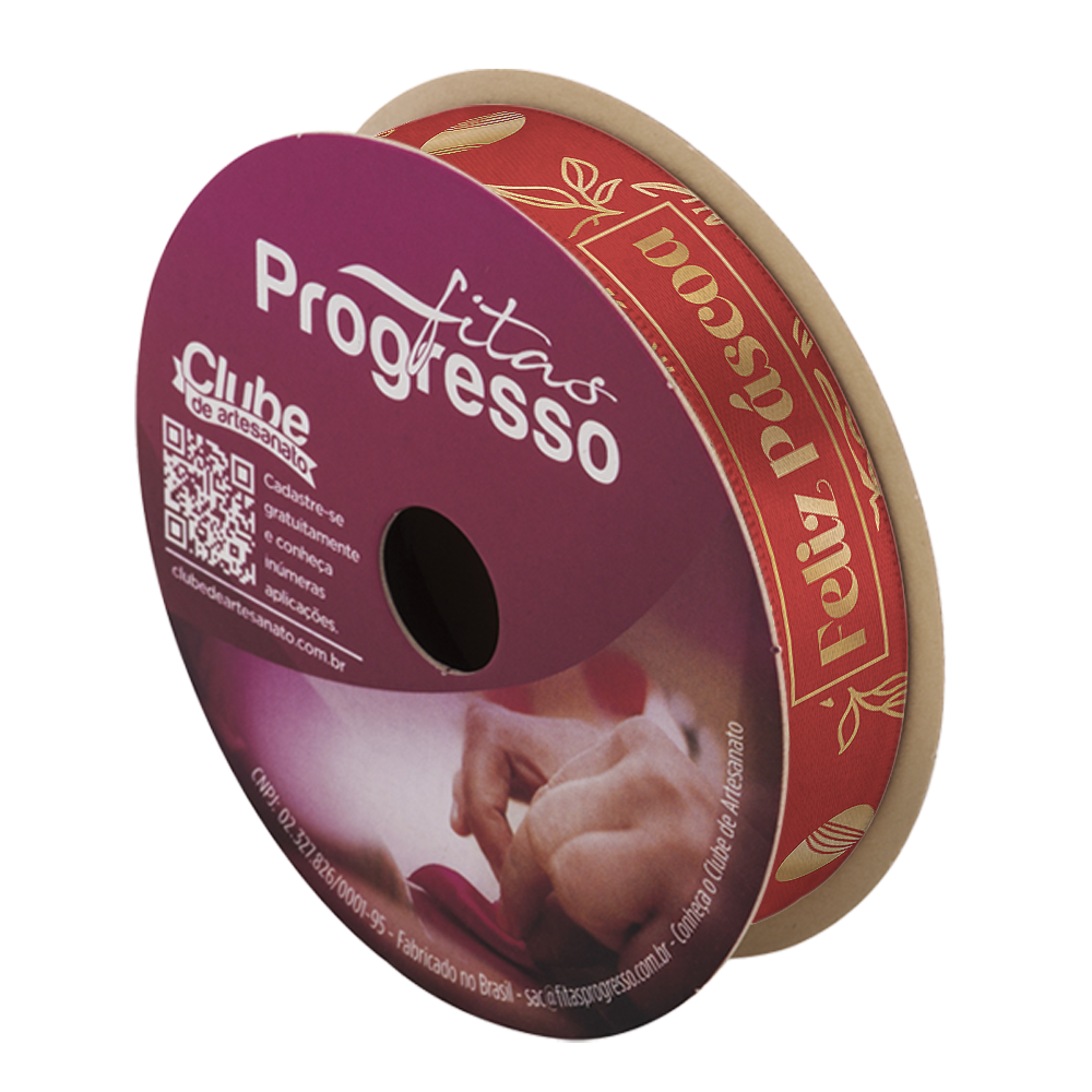 FITA DE CETIM DECORATIVA PÁSCOA - FELIZ PÁSCOA VERMELHO COM 15 mm DE LARGURA EM ROLO 10 METROS (ECF003H 522)