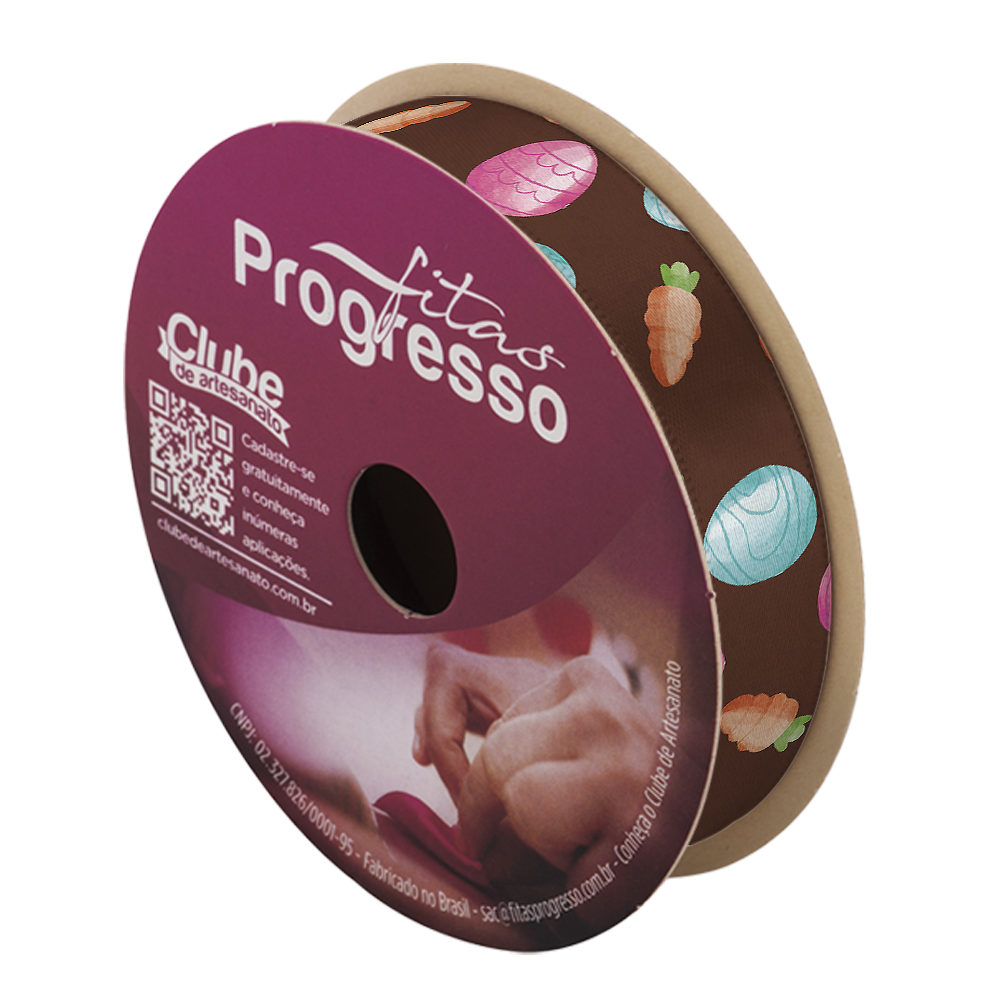 FITA DE CETIM DECORATIVA PÁSCOA - OVOS COLORIDOS MARROM COM 15 mm DE LARGURA EM ROLO 10 METROS (ECF003TR 104)