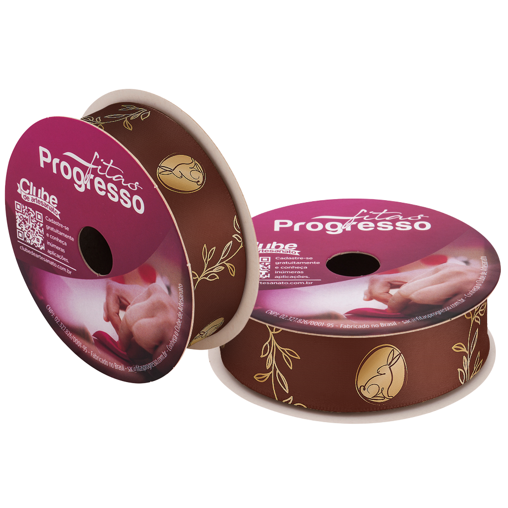 FITA DE CETIM DECORATIVA PÁSCOA - OVOS DE PÁSCOA MARROM COM 22 mm DE LARGURA EM ROLO 10 METROS (ECF005H 1111)