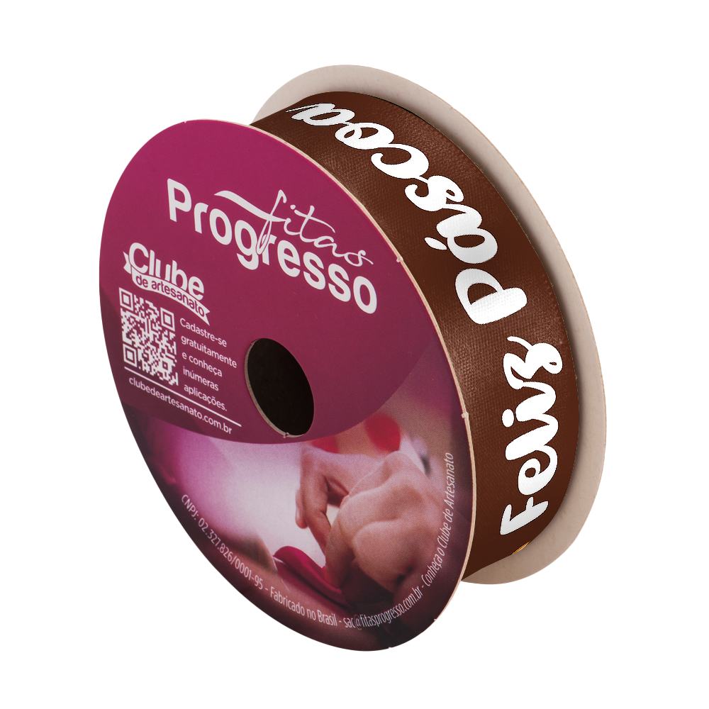FITA DE CETIM DECORATIVA PÁSCOA - OVOS E COELHOS COLORIDOS MARROM COM 22 mm DE LARGURA EM ROLO 10 METROS (ECF005TR 237)